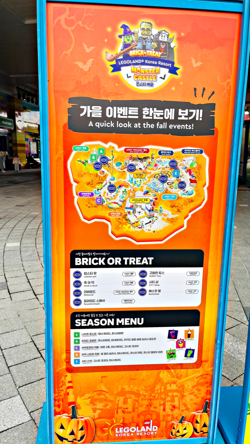 家人们,谁懂啊!作为一个资深乐高迷,带着娃去乐高乐园朝圣,简直就是我的人生梦想清单里必不可少的一项。讲真,这次的韩国春川乐高乐园之旅,真的超出了我的所有期待!与其说是陪娃玩,不如说是我自己玩嗨了。今天这篇超长待机攻略,我就把这次“寻梦环游记”的精华,毫无保留地分享给大家,希望能给准备出发的宝爸宝妈们一点点灵感! 第一站:踏入缤纷的积木王国刚到大门口,就被那座色彩斑斓的“怪兽城堡”给震撼到了!说实话,照片根本拍不出那种扑面而来的童话感。我们去的时候正好赶上秋季的万圣节主题活动,整个园区都装饰着南瓜和各种可爱的乐高幽灵,气氛直接拉满。一进门就能看到一个超大的活动导览图,上面清晰地标出了所有万圣节特别活动和季节限定菜单的位置,简直是路痴救星。
